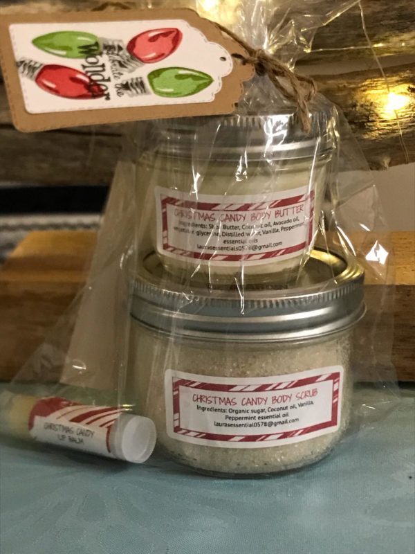 This lovely Christmas Gift pack contains a Body Butter, Body Scrub and Lip Balm packaged nicely with and handmade tag! This delicious flavour/scent is Christmas Candy, a wonderful aroma of vanilla and peppermint. ($20 for this set)