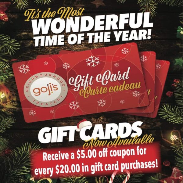 Goji’s Neighbourhood Eatery – Receive a $5 coupon for every $20 gift Card.