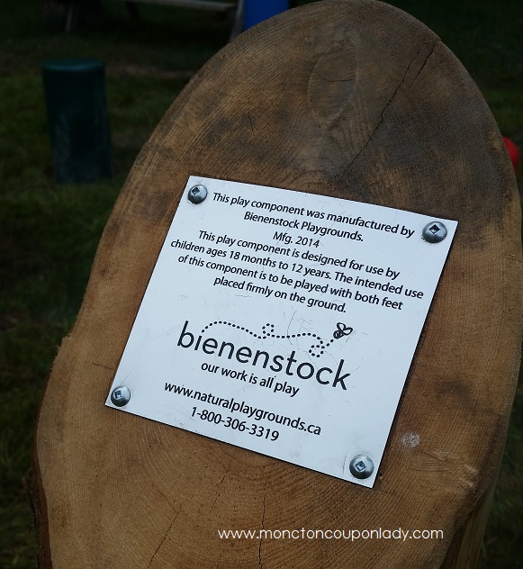 All in all the whole experience was wonderful for me, as a mom who can take my child there to enjoy it, and as a member of the Moncton community. This is the perfect new feature for the park and is situated in the middle of a large picnic area. If you want an area to take the kids, where you can let them run and climb, and not be nervous about every footstep, ladder, swing, etc…this is the playground to go to. Everything is really “safe”. No ladders to climb for the slide, just stroll up the hill! Practice your balance on the logs bordering the sanded area, or on the ropes. Bang on the drums and create your own music. Bring a book, and when the kids slow down for lunch, you can all gather on the log bench and read a book…or just rest for a few minutes.