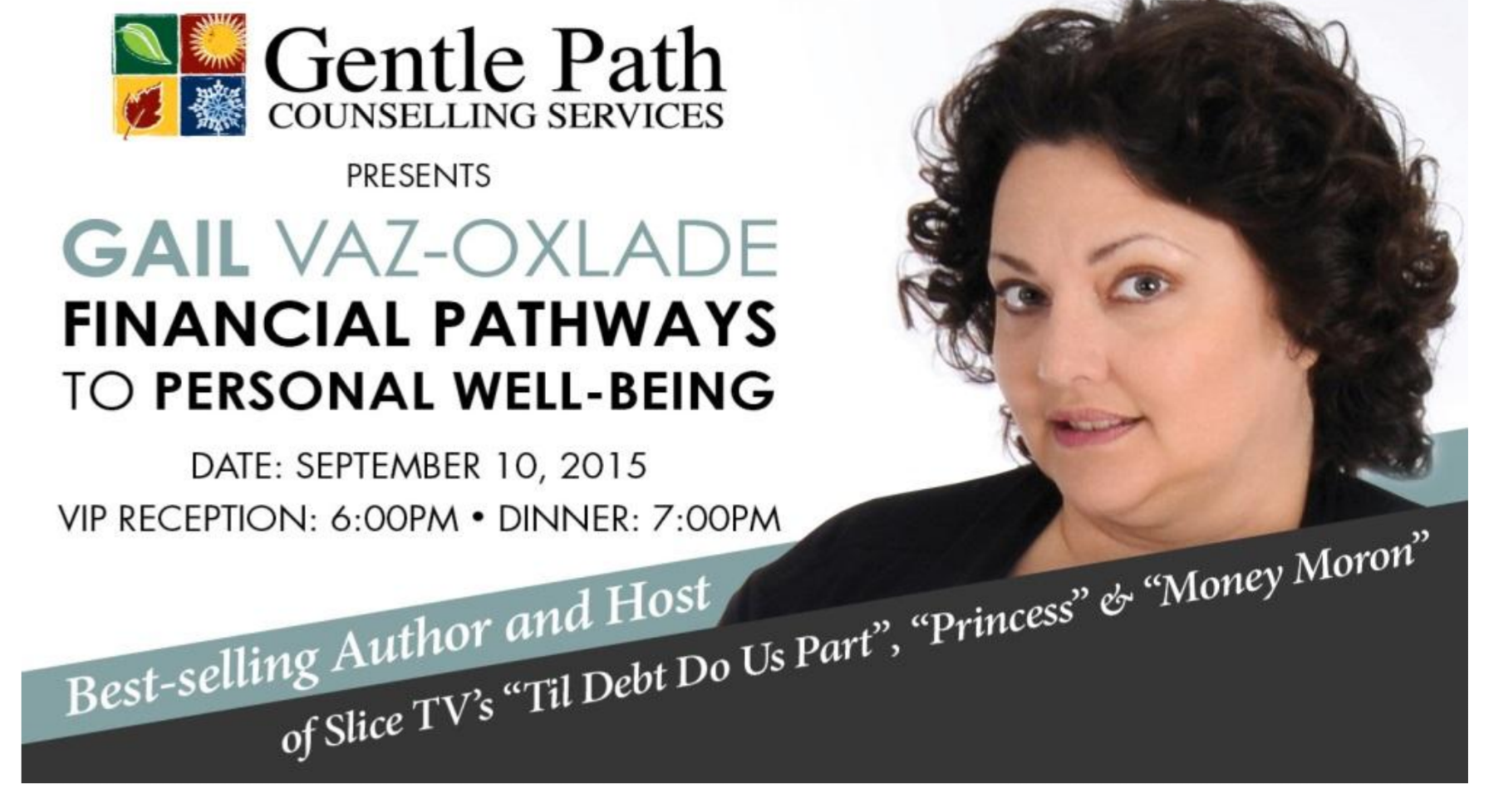 Guest speaker for the evening is Gail Vaz-Oxlade of Slice TV’s “‘Til Debt Do US Part”, “Princess” and “Money Moron”.