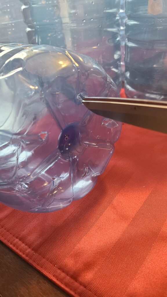 To properly close the container, use duct tape and make ventilation holes only on the top. These holes should allow rain and snow to enter. If you are using jugs or pop bottles, you don’t need to make any additional holes. Simply remove the caps and leave them off your bottles, allowing rain and snow to enter.